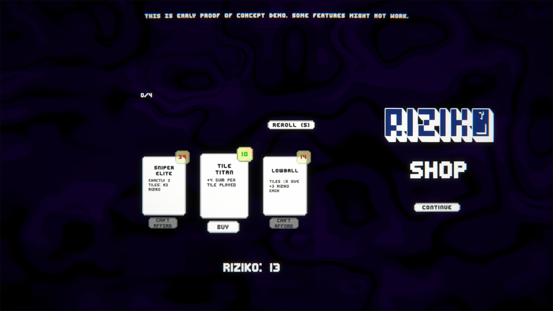 - 💰 High-Risk Economy: Earn Riziko (currency) by selling tiles and Jokers. Will you play it safe with "Even Steven" bonuses, or go all-in with the "Risk Taker" Legendary?